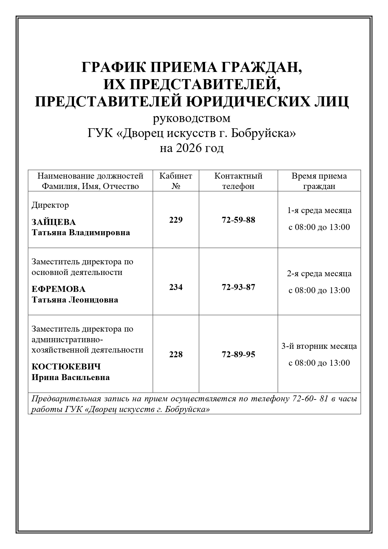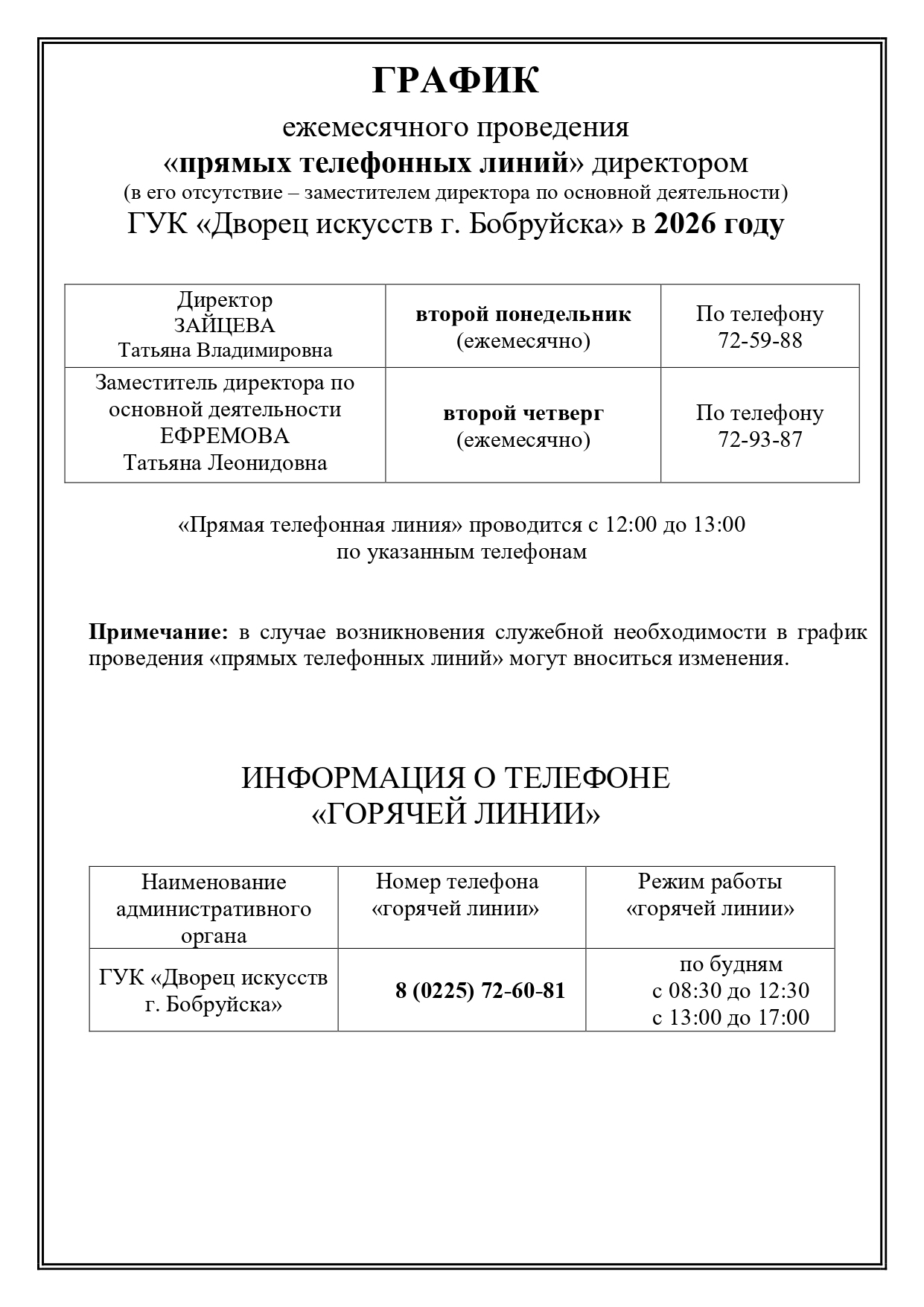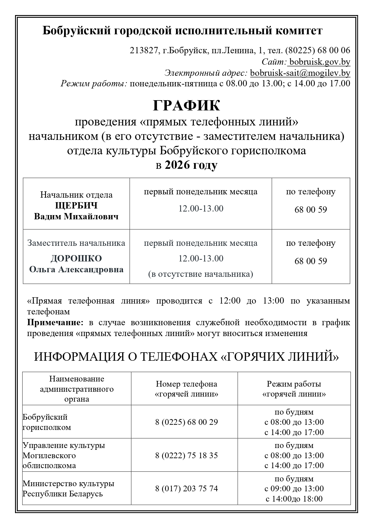 213811, г.Бобруйск, ул. Ульяновская 35/31, тел. (80225) 72-60-81